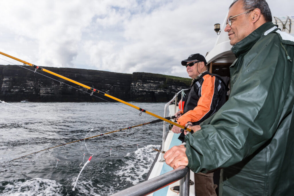 De eerste dag begint met een stevig Iers ontbijt. Niet veel later rijden we naar de haven waar de Clare Dragoon ligt, een 37ft Lochin 366 boot met een Caterpillar motor van 660pk dus dat schiet wel op. Er is een hoop verandert in Ierland sinds de laatste keer dat ik er was, alweer zo’n 15 jaar geleden. Toen lagen er alleen maar van die oude prutpoepertjes in de haven die niet vooruit waren te branden. Hoewel Ierland erg veel last heeft gehad van de crisis beginnen zij nu ook weer op te krabbelen.
