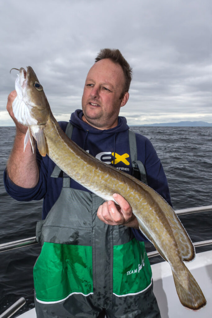 Het is belangrijk dat we ons aas net boven de bodem aanbieden om vastzitten te voorkomen tijdens de drift. We weten een aantal polakken, lengen en congeralen te vangen, maar de gezochte doornhaai laat zich helaas nog niet zien. Luke stelt voor wanneer het weer later in de week nog rustig is het nogmaals te proberen.