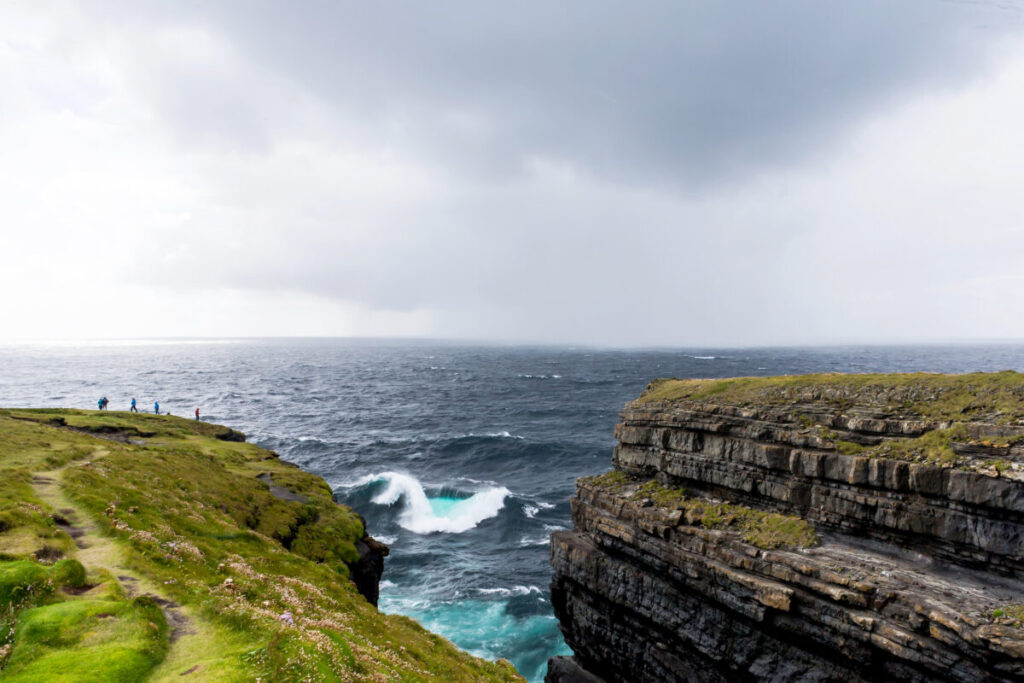 De laatste visdag is aangebroken, maar het waait nu zelfs nog harder dan gisteren en zelfs in de rivier valt niet meer te vissen. We besluiten een rondje te rijden langs een gedeelte van de ‘Wild Atlantic Way’ waar Loop Head een onderdeel van is en de moeite waard is om te zien.