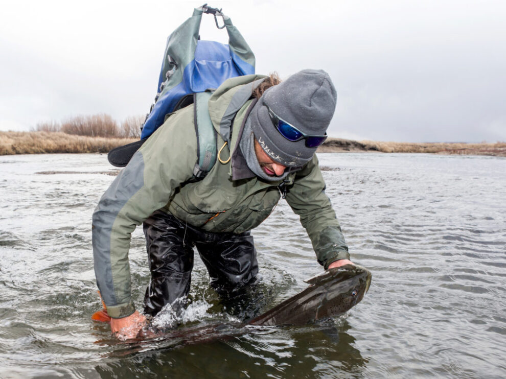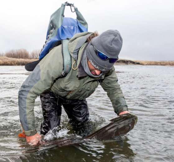 Met precisie werpt Jan zijn oppervlakte muis in het diepere gedeelte van de rivier zodat hij deze uiteindelijk langs een waterplantenbed kan...