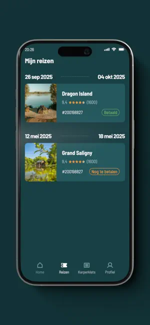 De app is gemaakt met één doel: jouw karpervisvakantie nóg makkelijker maken. Van plannen tot aankomst aan de waterkant.