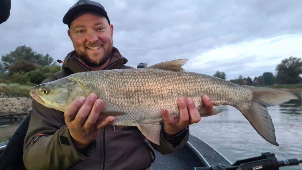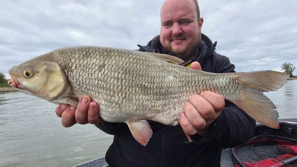Na dit geweld gebeurde er lange tijd niets. We zagen meervallen zwemmen op het scherm, maar ze toonden weinig tot geen interesse in onze aasjes. We besloten te gaan trollen en het werpen te laten voor wat het is. Af en toe nog wat worpen rond de koppen van kribben, maar echt los kwam de roofblei nooit.