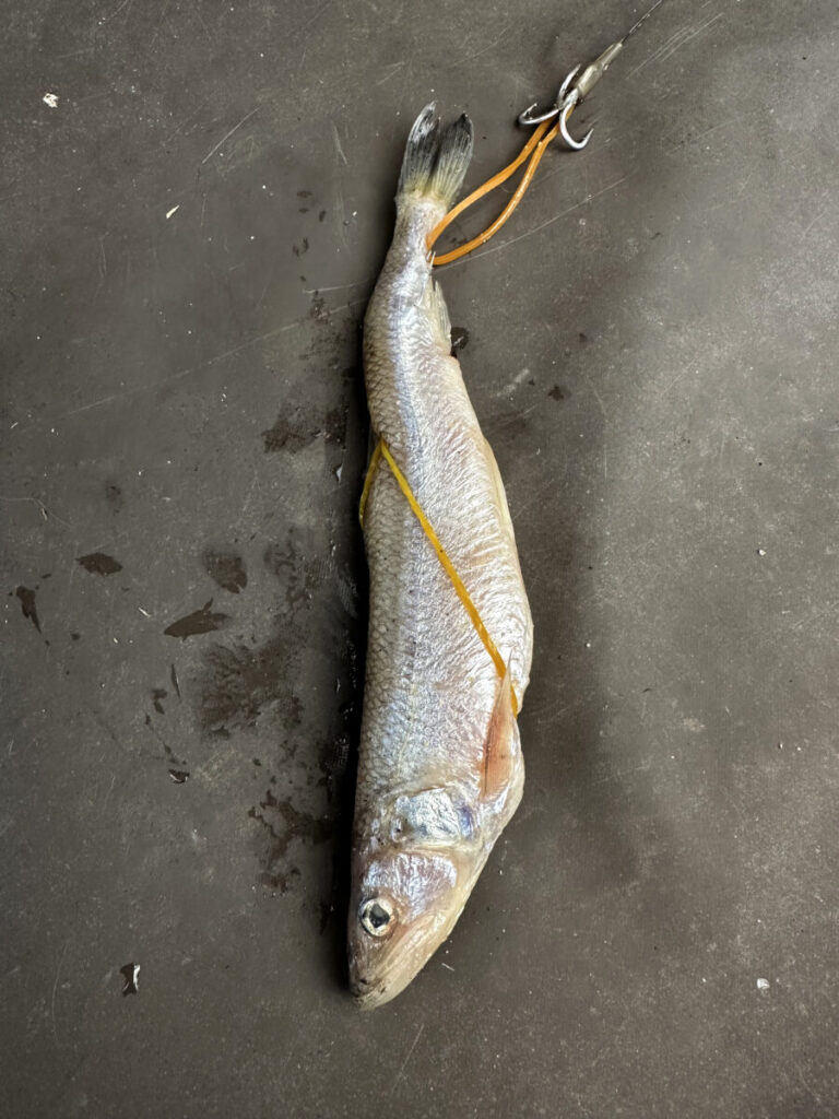 Ik heb het jarenlang geprobeerd, maar echt: één stevige dreg is genoeg. Meerdere haken zorgen vooral voor gepruts bij het onthaken. Eén robuuste dreg in de rug van de aasvis is simpel, veilig en werkt gewoon goed — ook op de bodem.