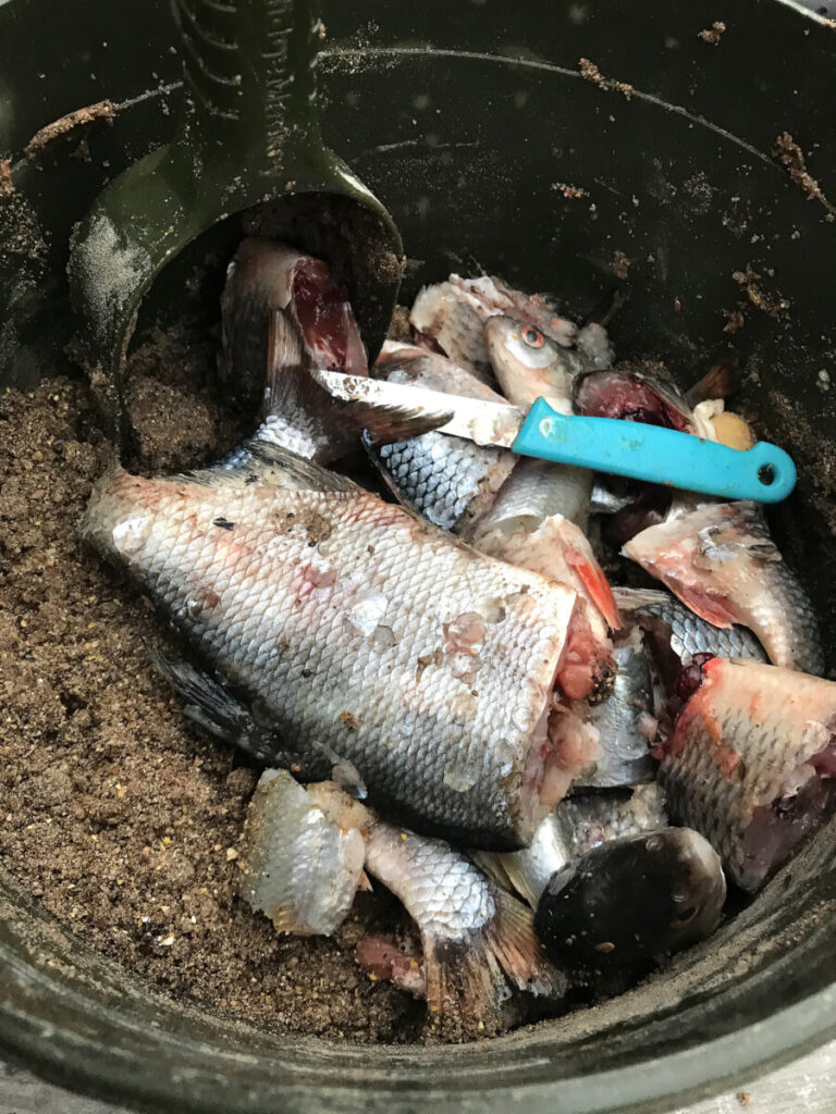 Een mix van stukjes voorn, wat makreeldelen, een handje bloodwormpellets, wat witvisvoer en een scheut sardine- of zalmolie kan een stek behoorlijk activeren. Voer een stek een dag van tevoren licht aan (max. 500gram) en vis die plek daarna heel gericht af. Je zult versteld staan hoe goed dit soms werkt. Zo’n stek trekt naast een school witjes (die arriveren meestal als eerste) daarachteraan vaak ook een stel groenjassen, ze komen én op het rumoer én op de geur af. Deze gratis freebees laat een dikke snoek daar dan urenlang rondhangen. Er hoeft even niet rondgezwommen te worden, want de buik is vol. Ga hier dan ook pas na 24/36u vissen, eerder heeft geen zin want de snoek heeft simpelweg door het voer even geen honger.