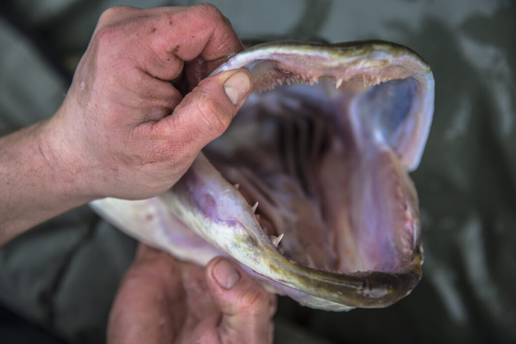 Foto’s doen het vaak kleiner lijken, maar een echte metersnoek heeft een bek van minimaal 30 cm diep. Die 800+ tanden doen hun werk, en de dreg moet eruit – durf jij dat aan? Doodaasvisserij is gericht op de grote jongens. Dat betekent: voorbereid zijn op een diep gehaakte dreg, zelfs als je razendsnel aanslaat.