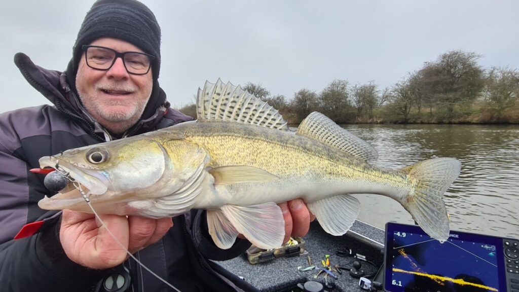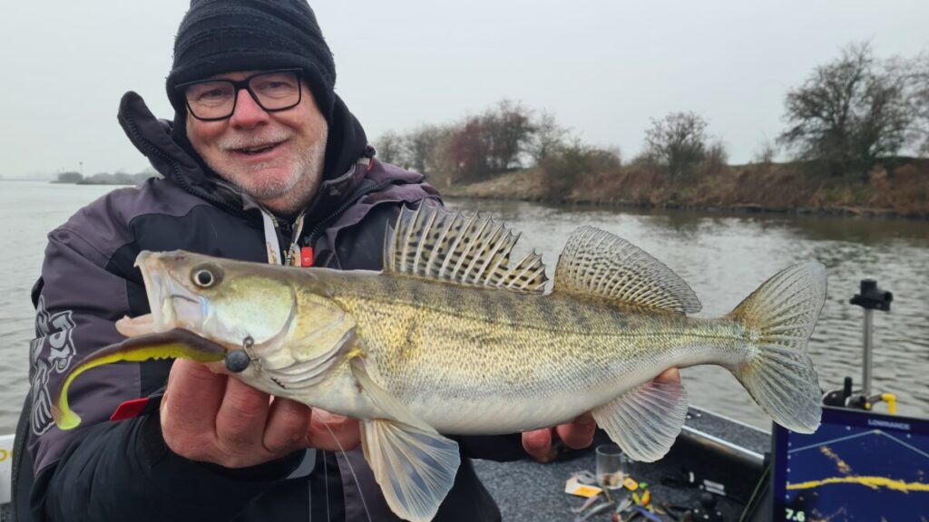 We laten ons langzaam naar een volgende stek afzakken. Daar is het plotseling Rob die begint te harken. Een stuk of 4 a 5 achter elkaar weten keer op keer zijn shad te vinden op 5 meter diepte en op 30 meter achter de boot.